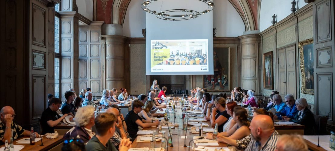 Als erste Stadt in Deutschland richtet Aachen einen ständigen Bürger*innenrat ein. Im Bürger*innenrat kommen Aachener*innen zwei- bis dreimal im Jahr zusammen und beraten über ein spannendes städtisches Thema, das von ihren Mitbürger*innen vorgeschlagen wurde.